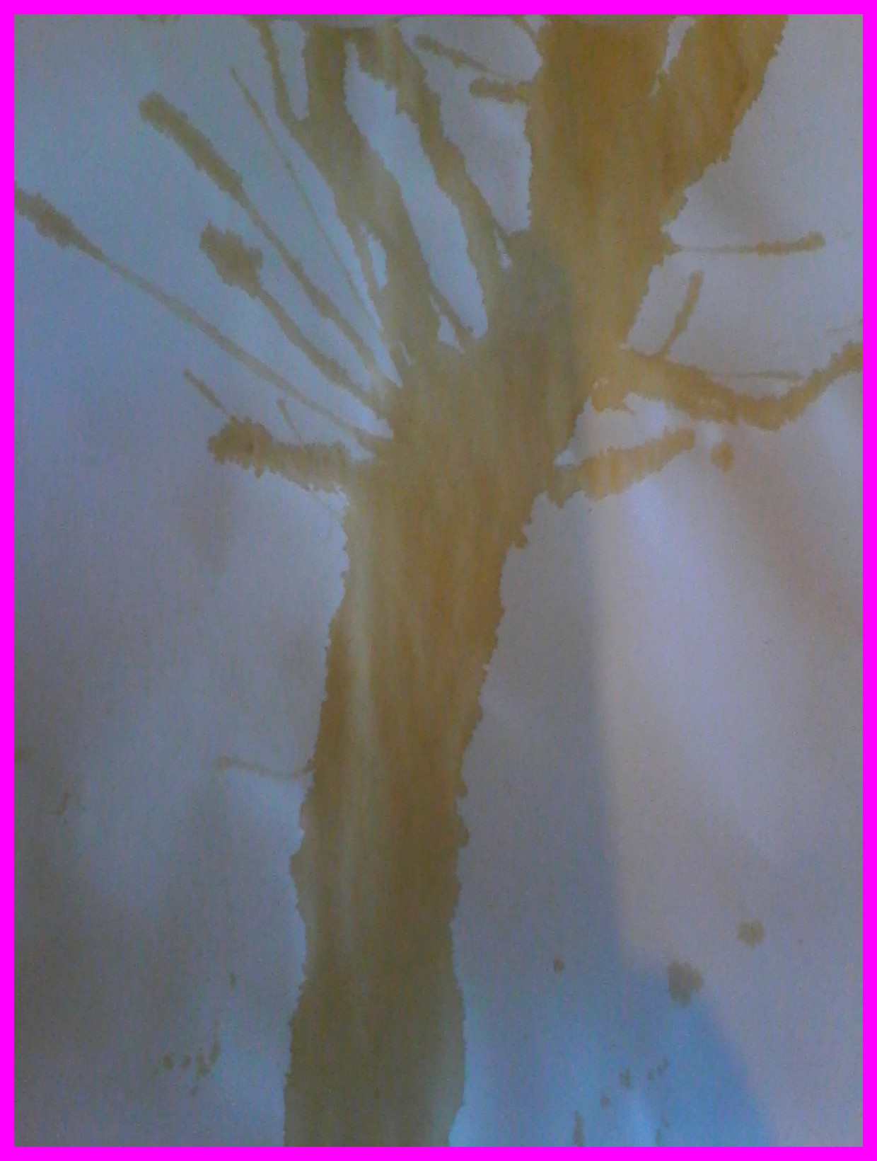 Molto tempo fa avevo visto su una rivista un colore soffiato, se fosse tempera o acquerello non ricordo ma non mi sembrava molto buona come cosa soprattutto da fare con bimbi piccoli e quindi ho pensato di provare a farlo con il caffè, visto lo avevo già usato in passato per invecchiare la carta ed è stato un successone 😀!