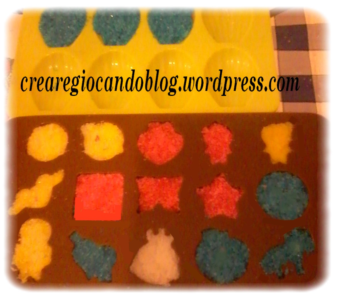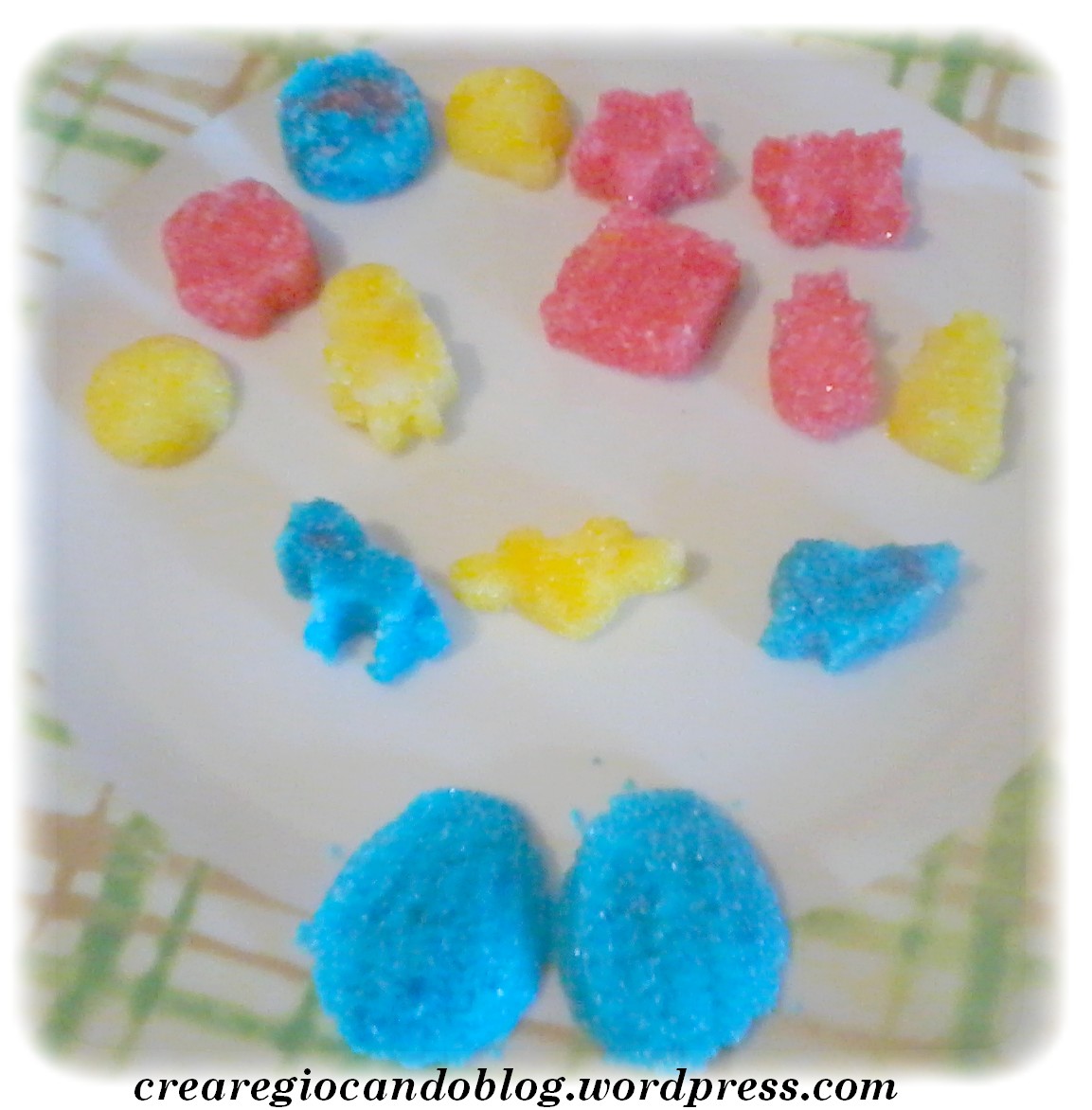 Non ho fatto foto del procedimento anche se vedere lo zucchero colorato era proprio bello già così!