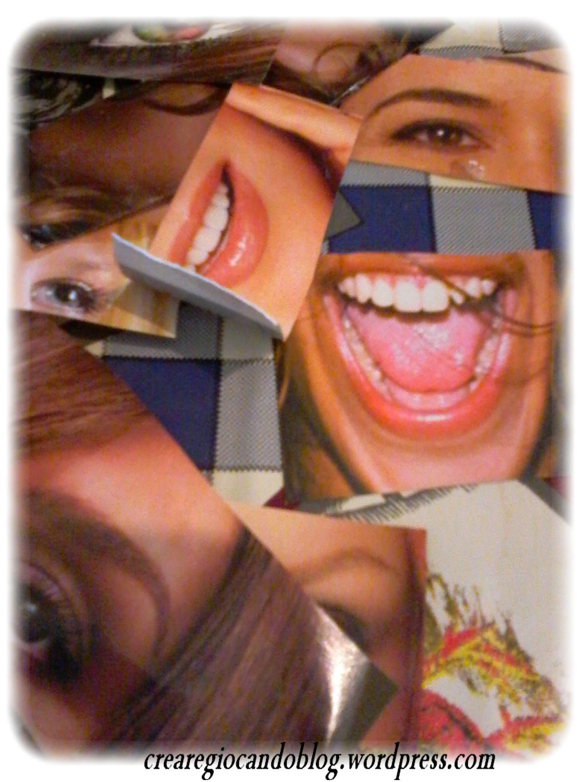 tutto ciò che dovrete fare è trovare delle pagine con le pubblicità e i visi delle modelle di grandi dimensioni, potete farne sia quelle a viso intero che altre leggermente più piccole, quelle a pagina intera dovete tagliare bocca, naso e occhi, nelle più piccole basteranno occhi e naso insieme e poi tagliate bocca.