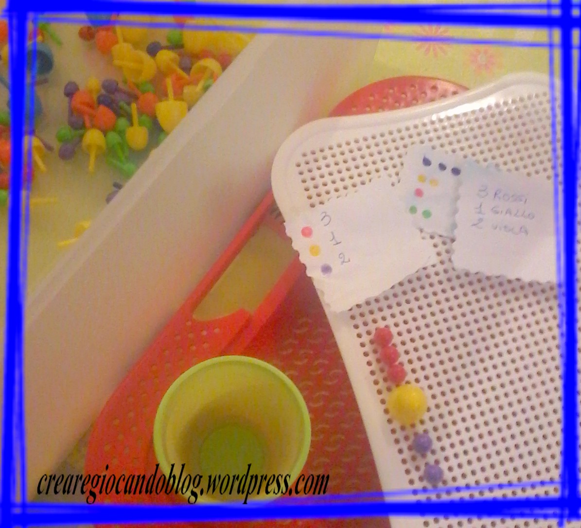 – chiodini (come vi avevo fatto vedere qui IL GIOCO DELLE PALLINE io li ho sempre trovati molto versatili e li uso in diversi giochi, presto ve ne farò vedere un altro molto simpatico, i miei sono questi Quercetti ma potete usare quelli che avete