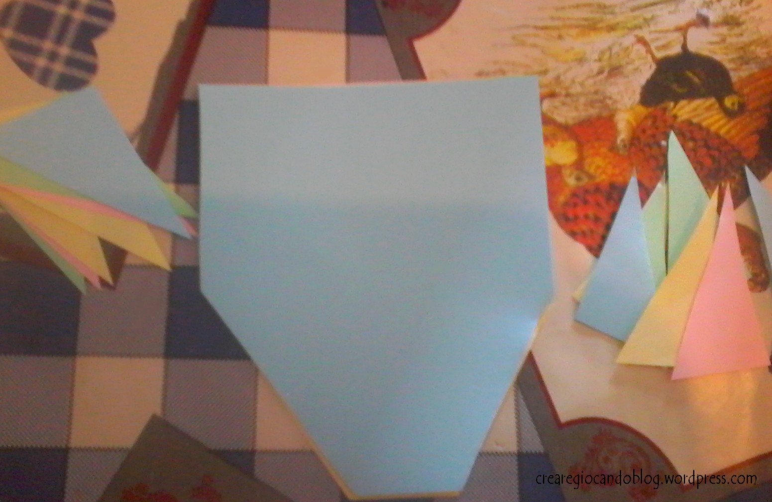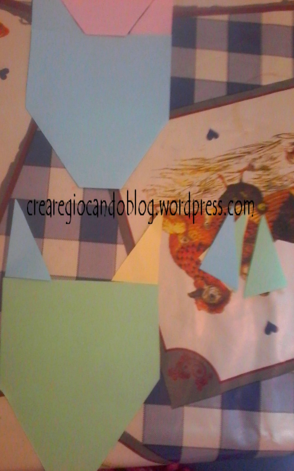Ecco come: prendiamo della carta, i post-it vanno benissimo, io li dovevo comprare colorati e ho dato alla carta la loro forma quadrata, nell’ultima foto un esempio fatto con i post-it gialli) tagliate il fondo da tutte e 2 le parti come vedete in foto si formano dei triangoli retti, ora portateli sopra per fare le orecchie .