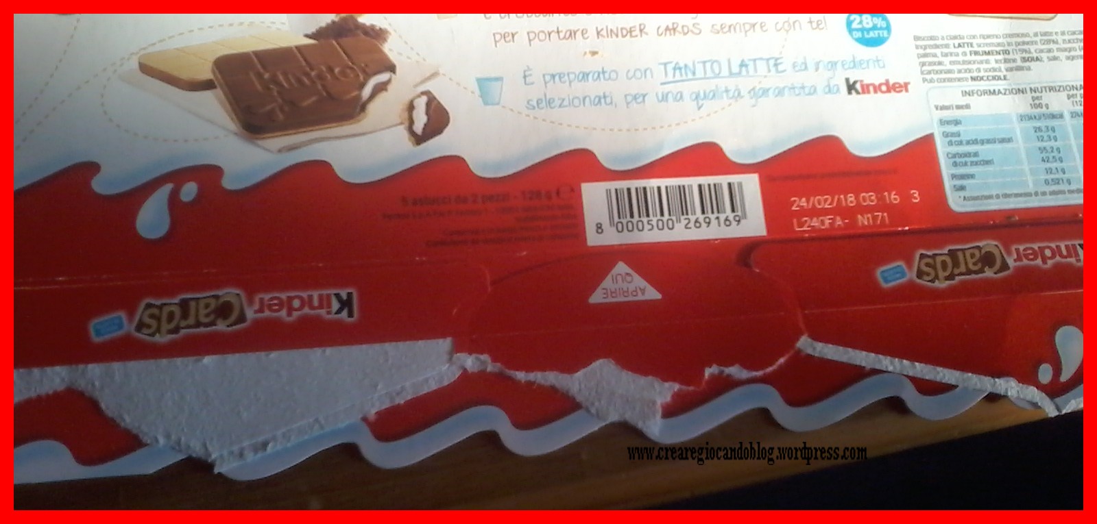 Prendete un pezzo di cartone (nel mio caso sempre il cartone di riciclo) di colore rosso (potete anche colorarlo con il pennarello).